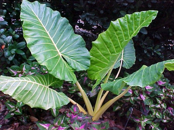 La plante se caractérise par la présence de feuilles ovales denses et thyroïdiennes. Le feuillage a une extrémité pointue et des veines prononcées. La culture a de longs pétioles juteux. Dans la nature, la plante pousse dans les forêts tropicales d'Asie.