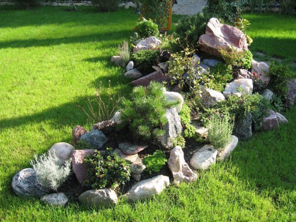 - Il est préférable de choisir un endroit clairement visible, par exemple le centre du site. Cela vous permettra d'admirer le jardin de rocaille dans différentes parties du jardin sous différents angles.