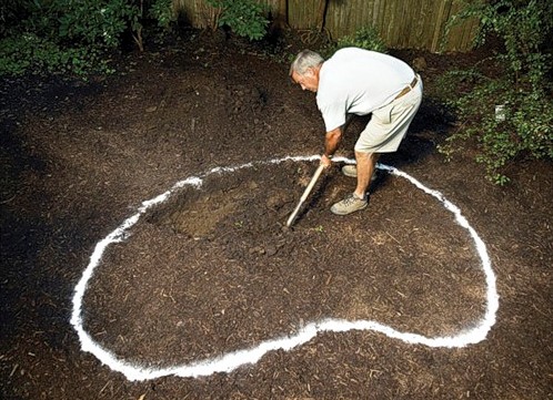 - Il est nécessaire de procéder à un approfondissement à l'endroit choisi d'au moins trente centimètres (de manière optimale 50 cm) et de remplir la fosse de matériau de drainage (l'épaisseur optimale du drainage est de 10 centimètres, et si le sol est très dense, la couche peut être rendue plus épaisse). La pierre concassée, la brique cassée, les pierres de paramètres modérés, le gravier sont idéales.