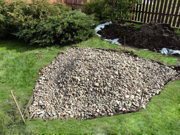Si le sol est sableux à l'endroit que vous avez choisi, la base de drainage peut être omise, mais dans d'autres cas, le drainage est indispensable.