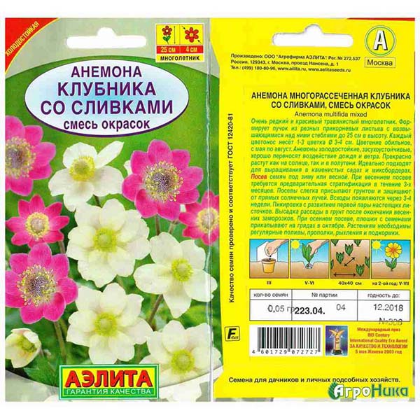 Les anémones peuvent être cultivées à partir de graines, mais malheureusement, la plupart des producteurs de graines obtiennent un résultat négatif désastreux. Cela est dû au fait que la capacité de germination des graines, même fraîchement récoltées, est d'environ 1/4, et qu'elles doivent d'abord subir une stratification, en d'autres termes, elles doivent être laissées pendant environ 2-3 mois dans un endroit froid et humide (par exemple, dans le réfrigérateur sur l'étagère du bas) ... Ainsi, si vous souhaitez planter des graines d'anémone au printemps, elles doivent être déposées pour stratification en janvier. La plantation de graines pour les semis (en mars) et les soins supplémentaires sont assez standard. L'essentiel est de ne pas enterrer les graines en aucune circonstance.