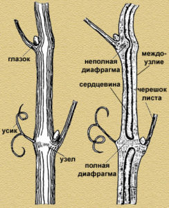 Remarque! Si la vigne est sèche et brun clair sur le site de coupe, une telle bouture ne convient pas pour un enracinement futur: elle est congelée.