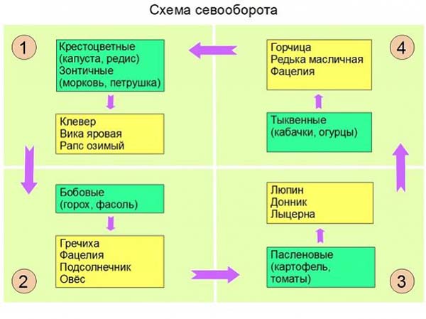 Afin d'éviter l'épuisement complet du sol et sa contamination par des infections (champignons pathogènes) et des insectes nuisibles, il est nécessaire périodiquement, le plus souvent, annuellement, de changer par endroits les cultures de légumes et de jardins (baies).