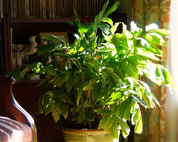 - Placer un palmier directement sur le rebord de la fenêtre et le sol nu n'est pas la meilleure idée, car sur le rebord de la fenêtre, l'air froid vient d'en bas et en hiver, le sol est presque l'endroit le plus froid de l'appartement. Par conséquent, si vous ne voulez pas que votre animal domestique meure, un pot avec une plante devrait mettre sur un stand (par exemple, en bois ou utiliser de la mousse). En général, c'est joli plantes tolérantes à l'ombre, par conséquent, il n'est absolument pas nécessaire de les garder sur le rebord de la fenêtre. Vous pouvez simplement les mettre près de la fenêtre, mais un coin très sombre ne leur convient pas.