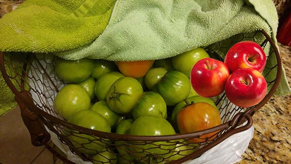 Au fait! Comme vous l'avez peut-être deviné, les tomates mûres rouges peuvent être remplacer par des pommes, des bananes, des tubercules de pommes de terrequi libèrent encore plus d'éthylène.