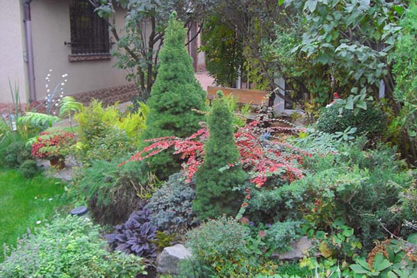 - 2 Épicéa de Konik dans l'aménagement paysager