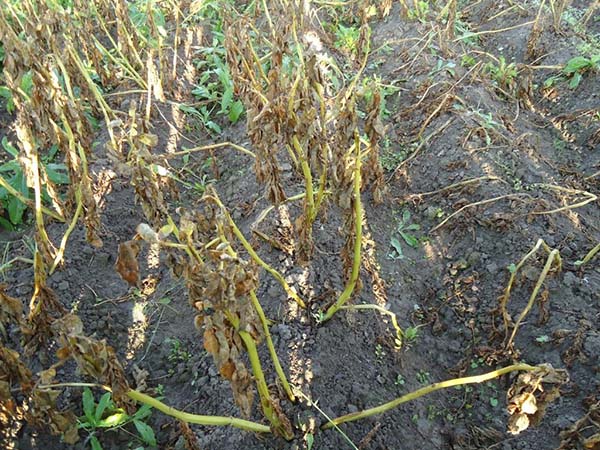 De plus, la pénétration du champignon phytophthora dans les tubercules est facilitée par des dommages mécaniques lors du creusement des pommes de terre.