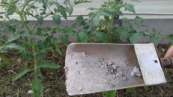De cette façon, vous pouvez poudrer cendre de bois cercle près de la tige (espacement des rangs) des plates-bandes de tomates pour éviter l'apparition du mildiou.