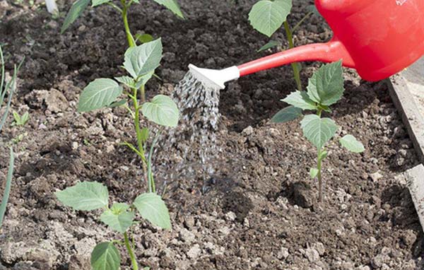 Important! S'il arrive que le sol soit très sec, ne remplissez pas trop les semis. Il est plus sage de ne pas ajouter beaucoup d'eau à la fois, mais petit à petit, avec des pauses de 2-3 heures.