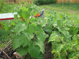 Les résidents d'été qui envisagent de prendre soin de physalis recommandent d'attacher une plante, par exemple des variétés mexicaines avec des pousses de 1,5 m de long.