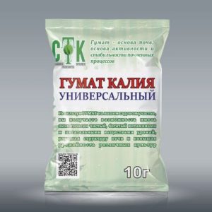 Remarque! Vous devez comprendre que l'humate de potassium est principalement un régulateur ou un stimulateur de la croissance et de l'enracinement des plantes, et non un engraisdepuis le même potassium qu'il contient, en règle générale, est très petit.