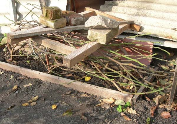 Remarque! Si vous enveloppez d'abord les pousses avec de l'agrofibre, et par dessus avec de la terre, cela ne fera qu'empirer, car au printemps les pousses seront très humides ...
