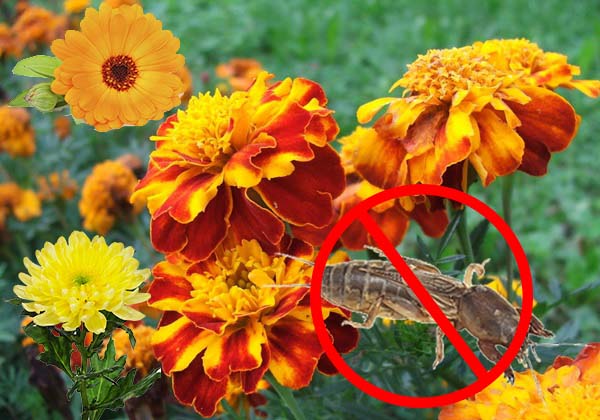 Pour vous protéger de l'ours, vous pouvez planter les fleurs suivantes autour des plates-bandes: souci, chrysanthèmes et calendula.