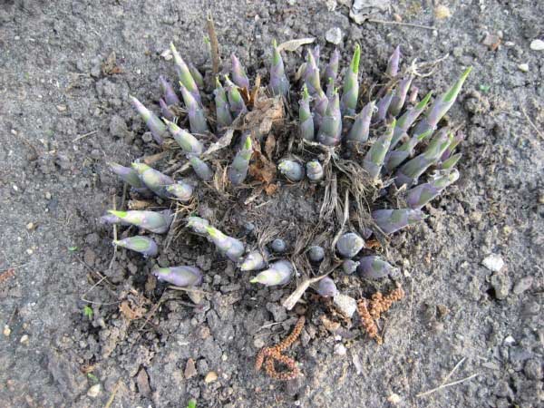 Toutefois! De nombreux jardiniers exposent délibérément les racines. À savoir, ils renversent les buissons avec de l'eau ou même les font tremper dans un grand bassin, de sorte qu'il soit alors pratique de séparer les douilles (avec vos mains ou avec un couteau) et vous pouvez obtenir le nombre maximum de divisions (nouveaux semis).