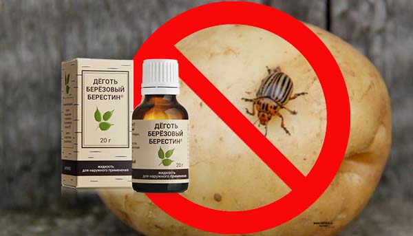 Pour éviter l'apparition d'un ravageur du Colorado, avant de planter, vous pouvez tremper les pommes de terre dans une solution de goudron de bouleau (1 cuillère à soupe pour 1 litre d'eau), puis éliminer les rainures avec une solution moins concentrée (1 cuillère à soupe pour 5-6 litres)