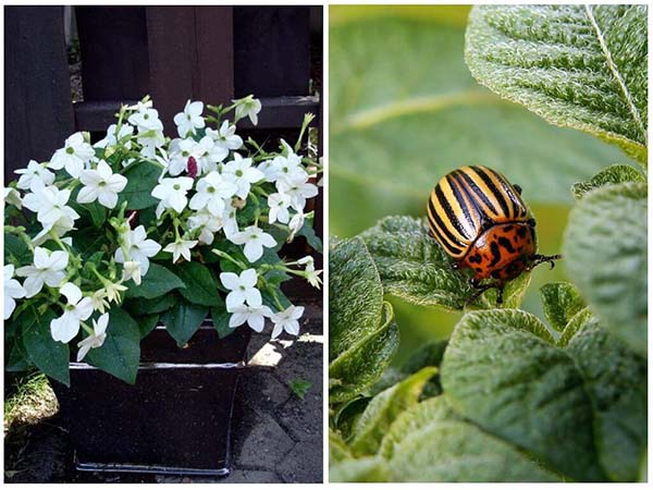 Un autre moyen efficace de lutte contre un coléoptère ravageur est le mélange planter des pommes de terre et autres légumes et fleurs.