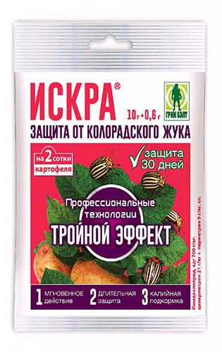 Combattre le doryphore de la pomme de terre avec des produits chimiques est en fait beaucoup plus efficace. Mais leur effet négatif n'est pas moins important, car les produits chimiques utilisés peuvent s'accumuler dans les tubercules de pomme de terre. Dans tous les cas, le choix vous appartient. Mais d'abord, assurez-vous de lire les instructions et les mesures de sécurité attachées au médicament.