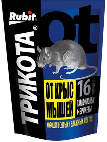 - Les briquettes de paraffine (biscuits) sont excellentes pour protéger les plantes des rongeurs en hiver (lorsqu'elles sont à l'abri), car ce médicament se dissout très lentement. En outre, les fonds fonctionnent très efficacement dans les pièces humides, par exemple dans les sous-sols.