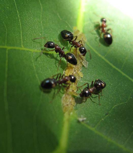 Le fait est que les fourmis transfèrent les femelles sans ailes aux plantes, et les femelles ailées volent toutes seules. De plus, les fourmis adorent le miellat - le jus collant que sécrètent les pucerons. Par conséquent, ils le protègent des insectes prédateurs: en hiver, ils le cachent dans des fourmilières et au printemps, avec le début du réchauffement, ils le transfèrent sur de jeunes plants.