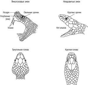 Il est important de pouvoir distinguer les serpents.Ainsi, les serpents non venimeux n'ont pas de cou (la tête est ronde), et les serpents venimeux ont une tête en forme de cœur (triangulaire), ils ont des glandes là-bas, donc ils sont beaucoup plus beaux et proportionnels, si je peux dire à propos de ces terribles reptiles.