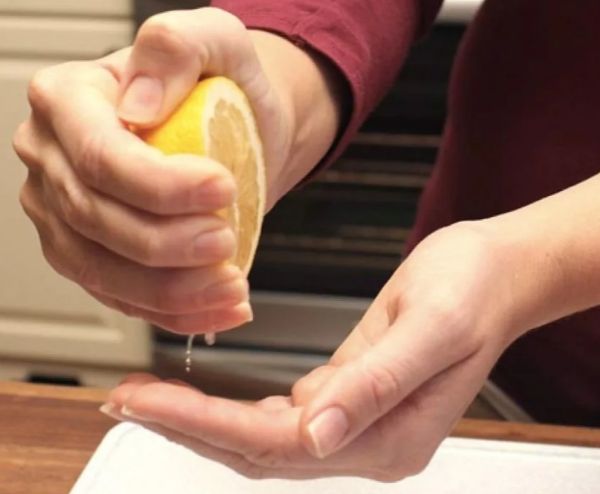 Conseil! De même, on peut prendre citron frais, coupez en tranches (moitiés) puis frottez bien vos mains avec son jus.