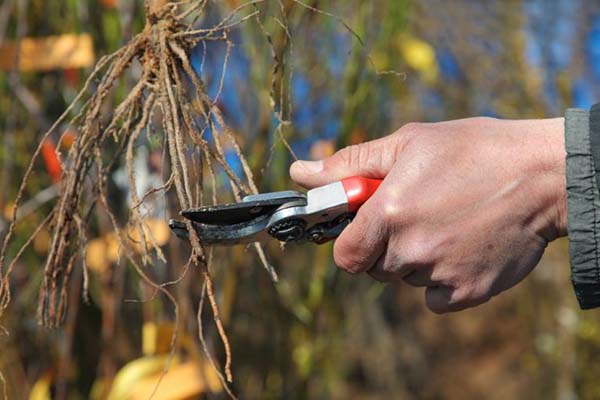 - Ensuite, vous devez couper les racines en ne laissant pas plus de 15 à 20 cm (certains laissent encore moins - jusqu'à 10 cm), afin qu'elles commencent à mieux se ramifier à l'avenir.
