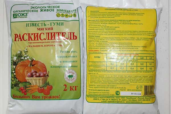 - Tout autre agent désoxydant spécial (par exemple, Désoxydant Lime-Gumi, qui, en plus de la désoxydation directe, guérit et augmente également la fertilité du sol).