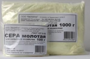 - Soufre (vous pouvez acheter du soufre moulu ordinaire dans un magasin de jardinage ou nourrir du soufre dans une pharmacie vétérinaire). Le taux d'application est d'environ 100-250 g / m2. lits avec incrustation peu profonde subséquente, fréquence - 1 à 2 fois tous les 2 ans.