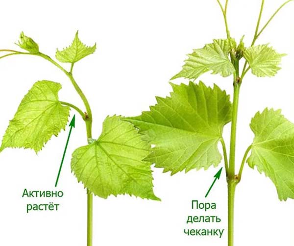 Les sommets des pousses (points de croissance) sont pincés avant la floraison (ou seulement au début de la floraison) afin de rediriger la nourriture vers les brosses à fleurs. En d'autres termes, en pinçant les sommets (points de croissance) des raisins, vous pouvez améliorer la qualité des ovaires, réduire leur perte et augmenter le nombre de baies dans la grappe.