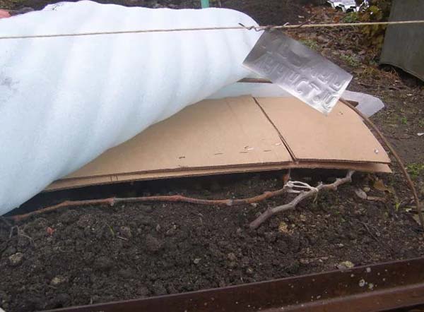Le carton n'est pas le meilleur matériau pour abriter les raisins, il est mouillé et se détériore rapidement, de sorte qu'un tel abri ne peut pas être qualifié de fiable.Bien que, s'il est en outre recouvert par le dessus d'un film ou d'un autre matériau qui ne laisse pas passer l'humidité, cette méthode a de bonnes chances d'exister.