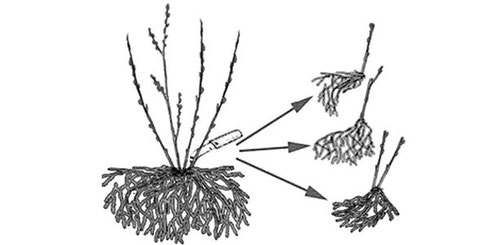 - pour debout variétés d'arbustes adaptées à la reproduction par drageons et boutures, divisant les buissons, mais la propagation avec des couches apicales et horizontales n'est guère possible, bien que théoriquement elle soit possible.