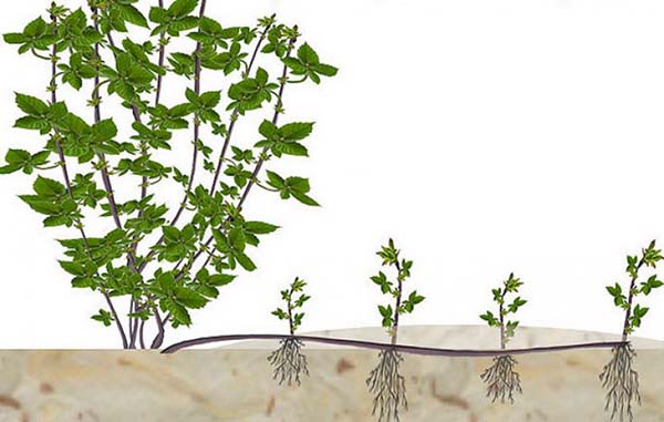 Encore une fois, il est utilisé pour la multiplication des variétés rampantesqui donnent peu de drageons. Si variétés dressées ne donne pas non plus de progéniture, alors leur Vous pouvez également essayer se propager par boutures de racines.