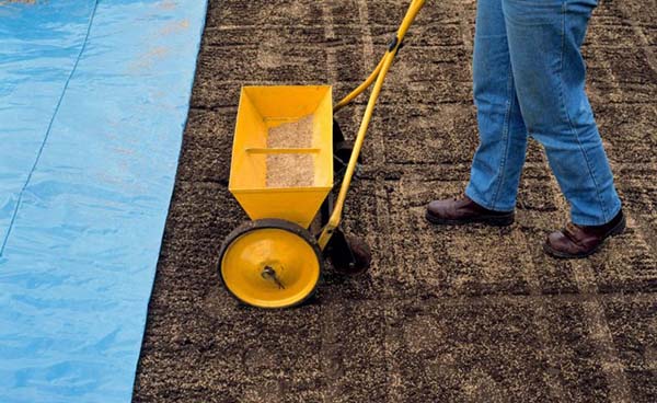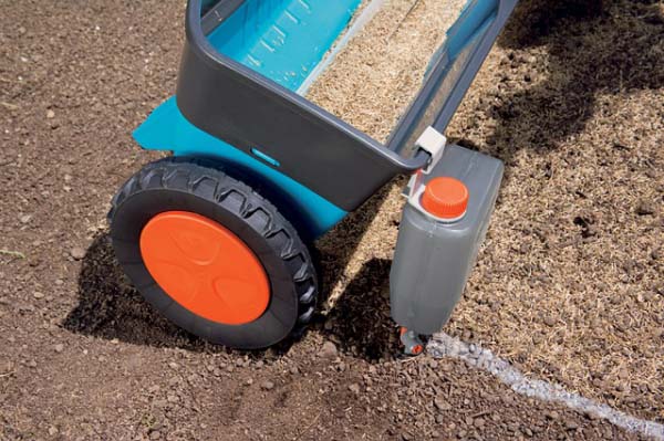 Si vous avez besoin de semer une grande surface, vous pouvez semer plus efficacement votre pelouse en utilisant semoir spécial. Il suffit de le parcourir sur toute la surface du site, il dispersera les graines assez uniformément.