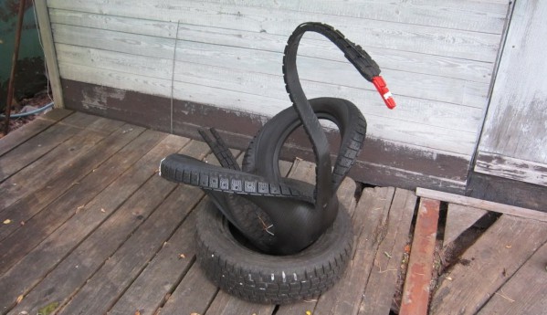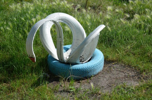 Comment faire un cygne à partir de pneus: découpez un métier à partir de vieux pneus