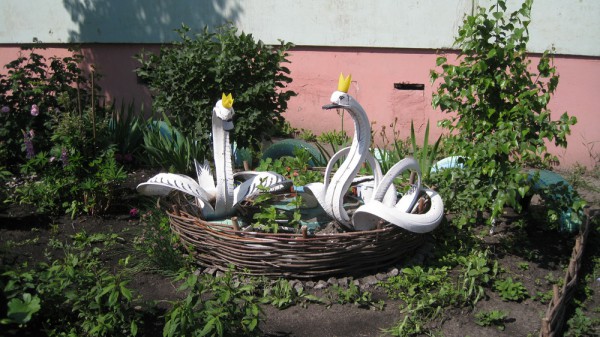 - Faites un lit de cygne. Vous pouvez placer l'oiseau dans n'importe quelle zone visible du jardin et en faire un parterre de fleurs avec vos fleurs préférées.