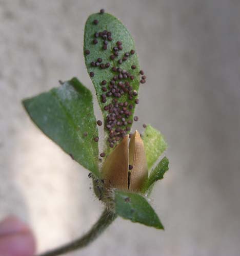 - Lorsque cette gousse mûrit, sèche (devient brune) et commence à s'ouvrir, vous verrez alors de petits grains brun foncé ou noirs, beaucoup plus petits que le pavot (0,5 mm de diamètre, poids - 0,05 g). Cela prend généralement jusqu'à 3 semaines. Si la boîte ne s'ouvre pas, bien qu'elle soit déjà sèche, elle peut être arrachée et déjà à la maison pour l'ouvrir vous-même.