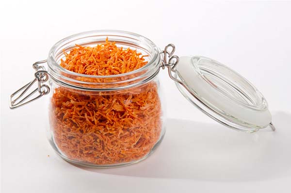 Donc, vous devez peler puis râper les carottes sur une râpe grossière. Après cela, séchez-le de n'importe quelle manière pratique, y compris à l'air frais. Bien sûr, un sèche-linge électrique est le mieux adapté pour cela (en dernier recours - un four, à 50 degrés avec une porte ouverte).