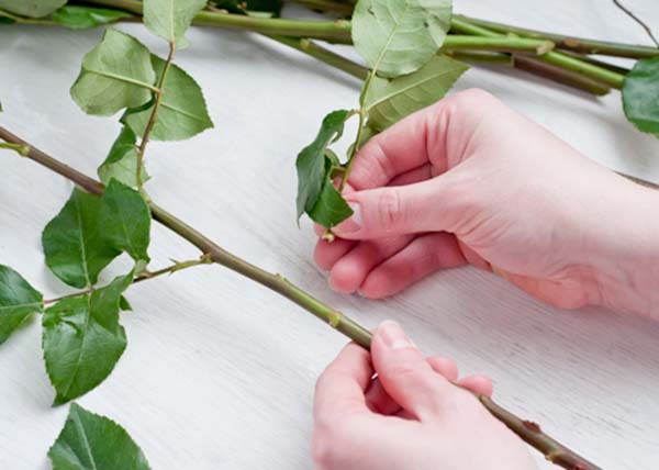 Avant de mettre une rose dans un vase, vous devez couper les feuilles du basafin qu'ils ne tirent pas sur l'humidité supplémentaire. De plus, si les feuilles sont sous l'eau, elles commenceront bientôt à pourrir, ce qui entraînera l'apparition de moisissures (développement de champignons) dans l'eau (elles se détérioreront rapidement), et la fleur ne pourra pas rester fraîche longtemps.