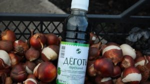Cependant, en option, vous pouvez faire tremper les bulbes pendant 1 heure avant de les planter dans une solution de goudron de bouleau (1 cuillère à soupe pour 1 litre d'eau).