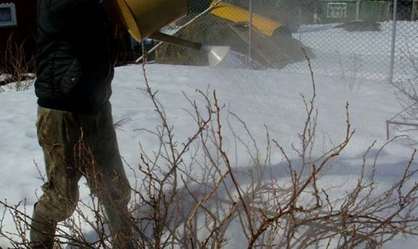 Si vous vivez dans une maison privée (vous pouvez difficilement vous rendre à la datcha s'il neige déjà), vous pouvez couvrir les groseilles à maquereau pour l'hiver avec la neige elle-même. Tout d'abord, jetez-le simplement sous le buisson, puis remplissez-le complètement.