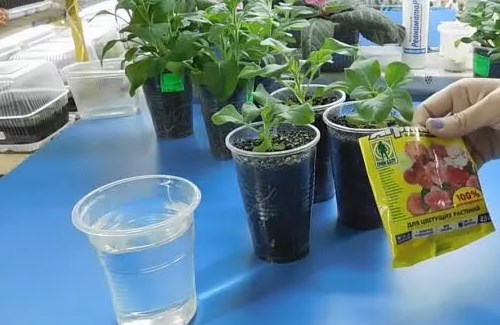Une alimentation rapide aidera les semis de pétunia à se développer plus activement et à gagner de la masse verte.