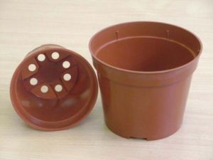Le pot doit définitivement en avoir assez grands trous de drainage (drain). Si vous souhaitez utiliser des plats dans lesquels il n'y a pas de tels trous, ils doivent être faits, non pas avec un clou ou un poinçon, mais avec quelque chose de plus épais, sinon ils se boucheront rapidement et l'eau stagnante a un très mauvais effet sur l'enracinement des boutures.
