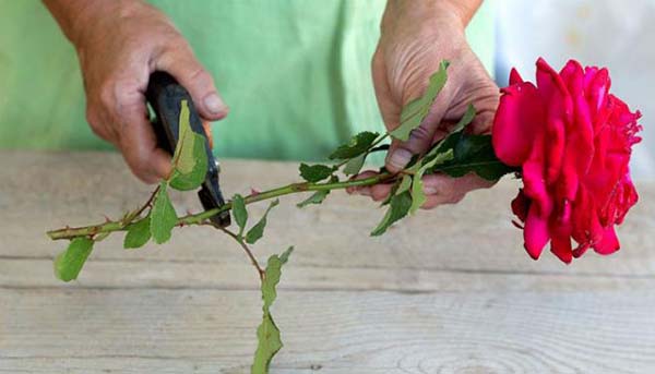 - Tige de rose ça devrait être complètement vert et frais... Si la fleur a été coupée pendant une longue période, la partie immergée dans l'eau peut s'assombrir ou se fissurer et devenir impropre à la plantation. Par conséquent, selon la logique des choses, il est conseillé d'effectuer des boutures le jour même où les fleurs vous ont été présentées ou que vous avez acheté, au maximum - le lendemain matin. D'une manière ou d'une autre, plus la rose est fraîche, plus les chances de réussir son enracinement sont élevées.