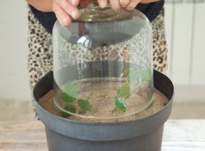 - Créer une mini serre (Effet de serre), couvrir le haut de la coupe avec une bouteille en plastique coupée (sa partie supérieure avec un couvercle),pot ou sac en plastique. Si la coupe n'est pas couverte, elle souffrira grandement en raison de la sécheresse excessive de l'air ambiant.