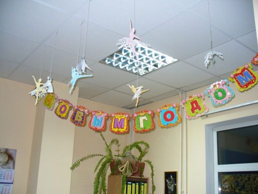 - Lors de la décoration d'une classe pour le Nouvel An, l'âge des élèves doit être pris en compte: pour les lycéens, quelque chose d'original, pas de trivial, convient, et pour les élèves des classes inférieures quelque chose de mignon et de brillant.