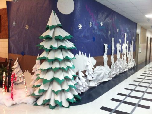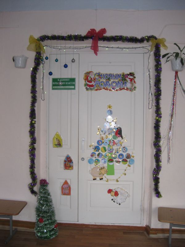 Pour décorer magnifiquement et de manière inhabituelle la porte et les murs de la salle de classe pour la nouvelle année, vous pouvez utiliser: