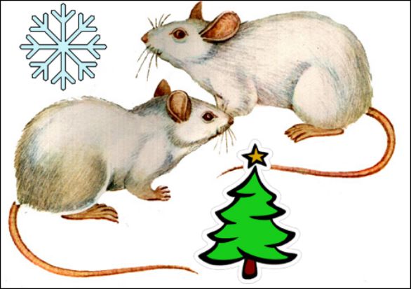 Conseil! Vous pouvez dessiner des dessins thématiques au tableau: Rat blanc, Père Noël, Snow Maiden, flocons de neige, sapin de Noël.