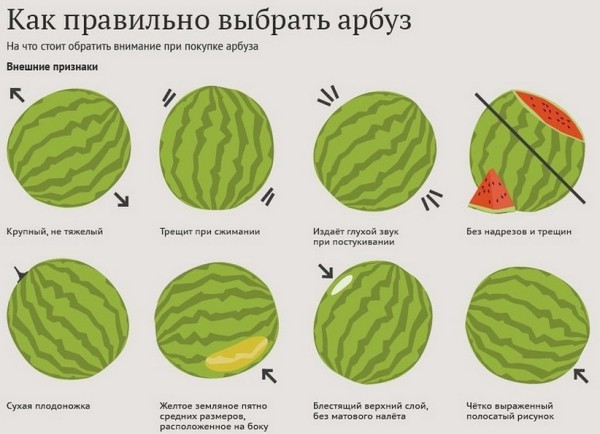Astuce n ° 8... Si vous voulez choisir une pastèque sûre, savoureuse, mûre et sans nitrate, vous vous devriez vérifier auprès du vendeur s'il a un certificat pour le produit... Si le vendeur ne dispose pas d'un tel certificat, il faut douter de la qualité du produit et rechercher un autre point de vente pour les baies juteuses. En outre, les ventes précoces de pastèques peuvent indiquer une teneur élevée en substances nocives.