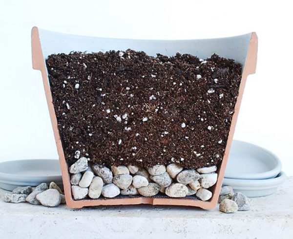 - Placez une couche de drainage au fond du pot.