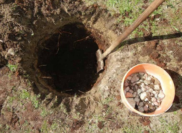 Si l'enracinement est prévu sur un sol lourd, une couche de drainage doit être posée au fond de la fosse, ce qui évitera l'humidité stagnante. Pour ce faire, ajoutez-y des gravats et du sable.